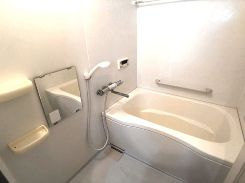 浴槽の向こう側に手摺があるのが分かるでしょうか?