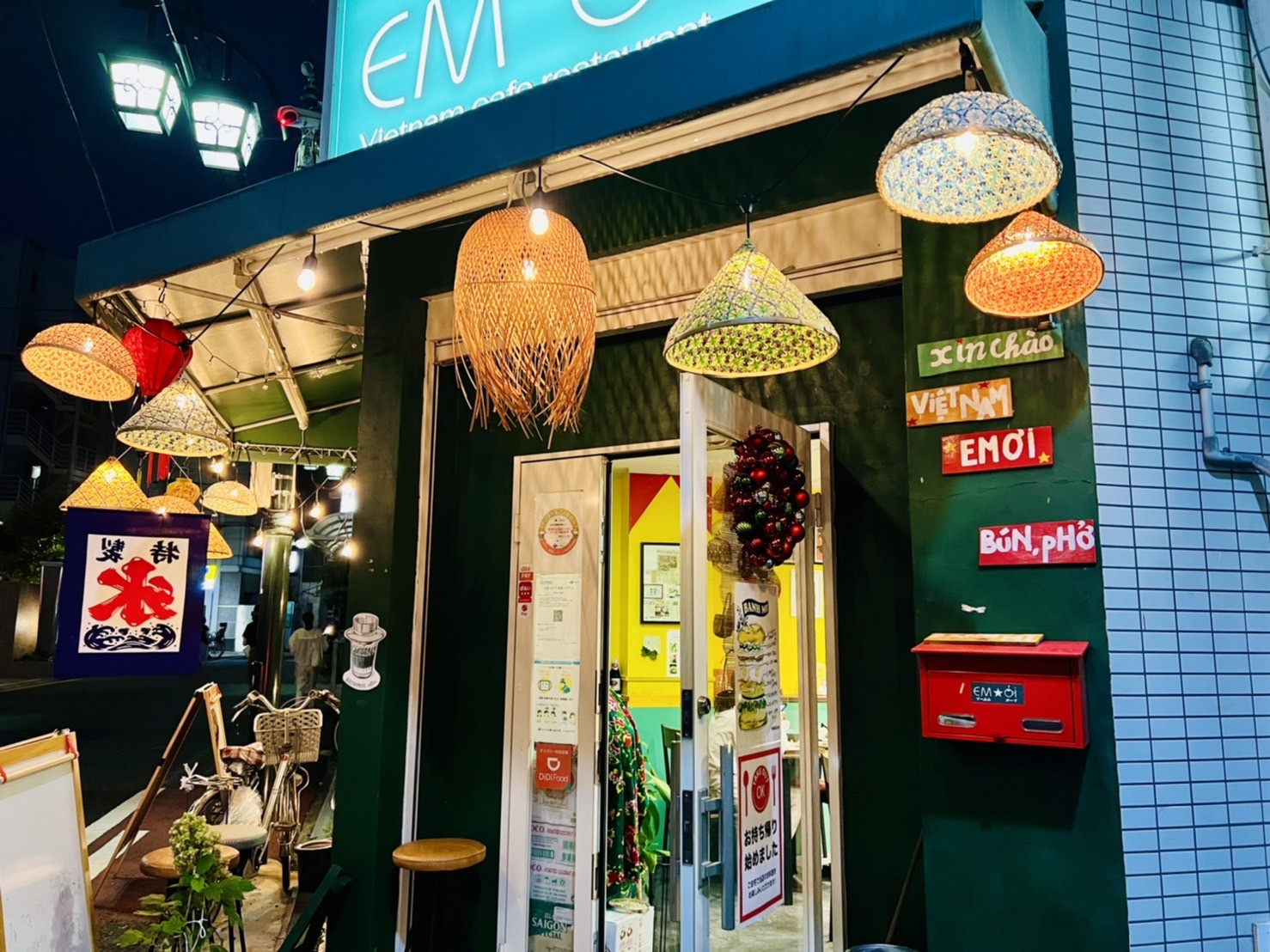 外観はベトナム仕様になっており夜になるとライトが灯りオシャレな雰囲気になります(^^